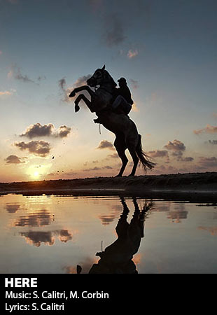 Most of the songs composed by Calitri and Corbin have Corbin working the arrangments with Calitri driving the melodies. Most of the lyrics are written by Calitri. Some music, like I'll Return, was composed by Corbin for Calitri's lyrics. Says Calitri: "Our songs are true collaborations, sometimes I drive the melody, sometimes he does. Sometimes we both do."